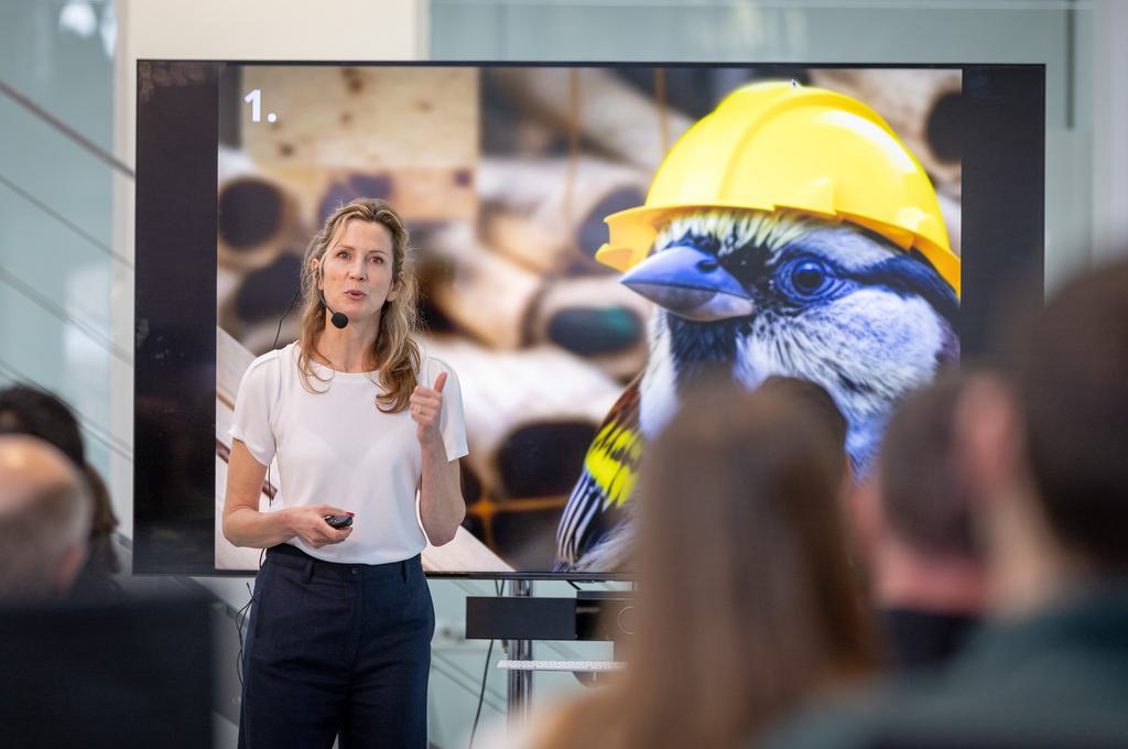 At her company, NEST, Ingrid Sloots and her colleagues deal with combining nature and architecture on a daily basis. After all, in the past 100 years, biodiversity went down 80 per cent. Nature will recover, 'it can do without us', says Ingrid. But we cannot do without nature. We need to start planning differently, both in cities and in agricultural areas: build less densely, keep cluttered areas messy, and don't plug every hole in a building for the sake of insulation. 'Gloomy,' Ingrid says of the figures she shows. But, she reminds us: 'You guys are part of the solution!'