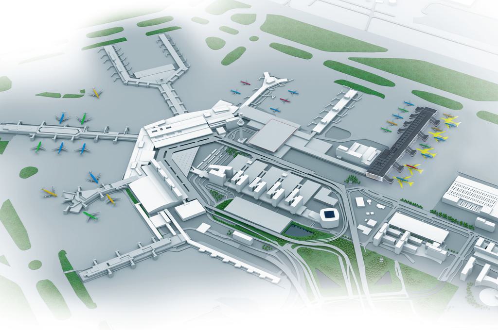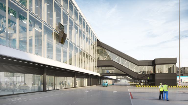 With an area of 55,000 square metres, the new pier will feature five gates for narrow-body aircraft on the north side and three gates for wide-body aircraft on the south side. The gates on the south side can also be used to accommodate six narrow-body aircraft. Two wide-body gates will be added to the south side at a later stage. These two gates are not part of the assignment. The commissioning of the pier is planned for the end of 2019.