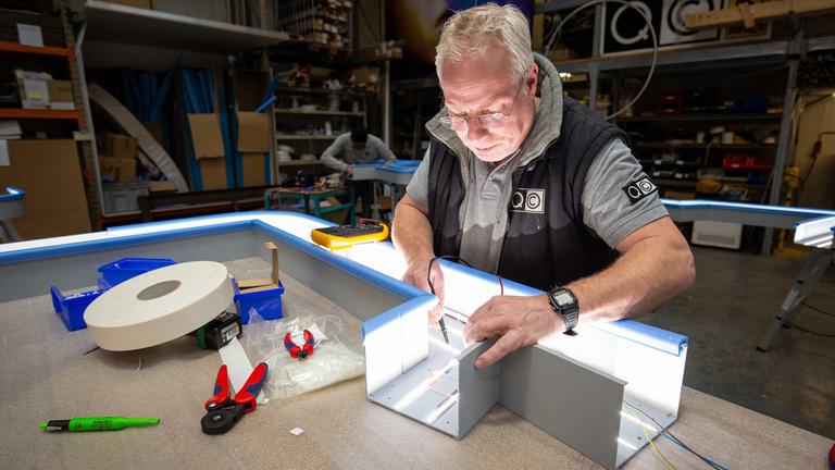 For the council chamber, for example, cepezed and cepezedinterior designed a dimmable ‘LED chandelier’ in the shape of the old ramparts, which lends the room a unique Woerden characteristic. QC Lightfactory from Bavel manufactures the luminaire, using both computer-controlled milling machines and craft techniques. The chandelier has a diameter of more than eight meters and consists of a configuration of lightweight aluminum profiles covered with acrylic sheet material.
