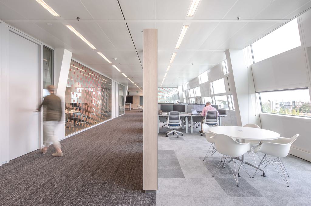 The new Vodafone Ziggo contact center in Nijmegen now is in use. Based on the design of cepezedinterieur, more than 260 workplaces on 2980 m² (nfa) have been realized in the multi-tenant building 52degrees. In its design cepezedinterieur created two different worlds that together form a harmonious contrast in experience. A lively and dynamic heart, the social hub; and a surrounding quiet, understated work environment. The two domains are clearly divided by a light wooden shell that transforms from more open to closed and in which the wardrobe, pantry, closet spaces and seating niches are integrated. Circularity and the choice for sustainable materials played an important role in the project. For example, the design of the meeting room and workplaces consists largely of reused and refurbished second life office furniture.