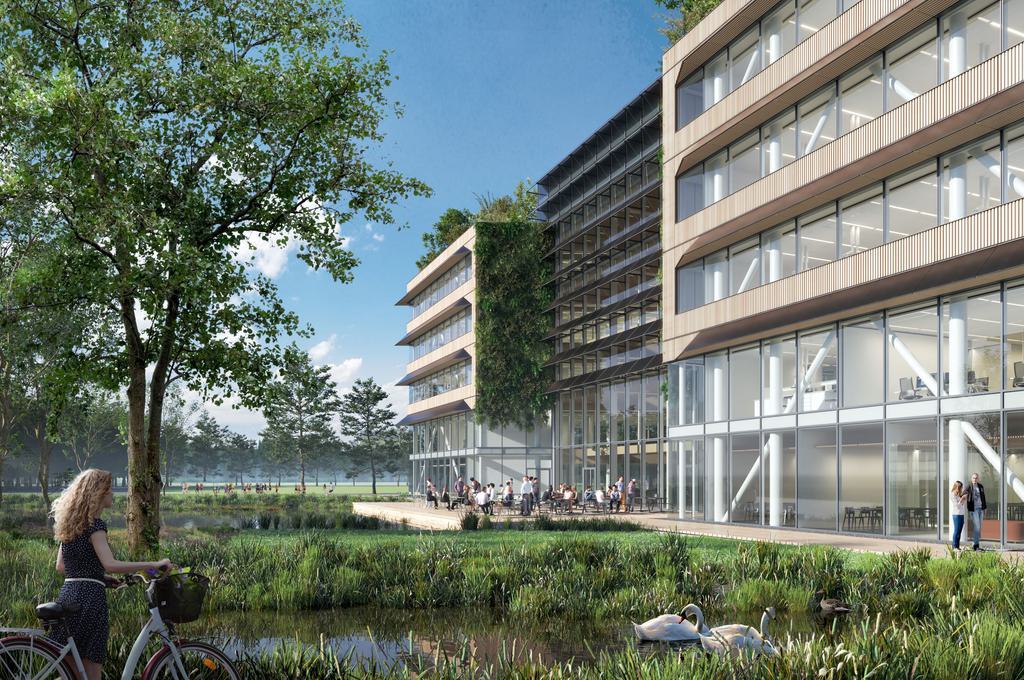 A spacious and light atrium forms a vibrant core and connects to a south-facing terrace. The atrium is the place to meet. There is also a direct connection with the surrounding offices, laboratories and meeting rooms through balconies and walkways, among other things. The glass plinth will house a science gallery for exhibitions.
