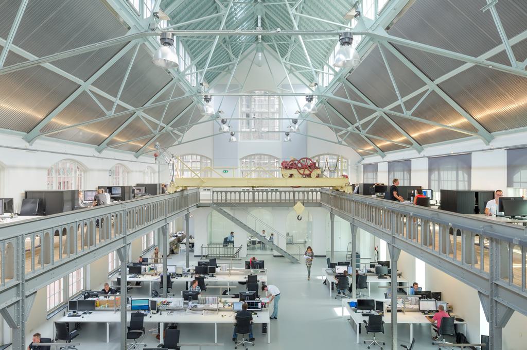 Vandaag de dag is deze hal nog steeds een voorbeeldige daglicht-werkplek, juist ook voor zijn nieuwe functie als architectenbureau. In de zomer brandt überhaupt geen kunstlicht en zelfs nu in de winter is het grootste deel van de dag de zon de enige lichtbron. Wat zullen de cepezed medewerkers een goede nachtrust en een hoge kwaliteit van leven hebben!