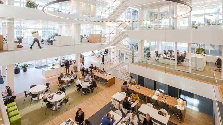 The questionnaire concerns, for example, the spatial organisation. In the Van Spaendonck Enterprise House, for instance, the glass inner walls turned out to be a little too excessive. The split levels, which the building already had and which have been retained, define spaces instinctively, but offer just not enough privacy or serenity in some places due to the large amount of glass. At the same time, the user appreciates the feeling of spaciousness and the daylight falling far in.