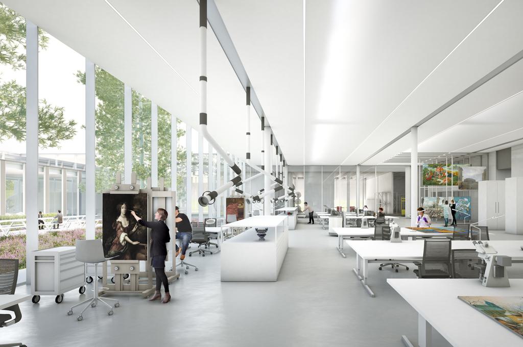 Today, Minister Ingrid van Engelshoven of Education, Culture and Science performed the groundbreaking ceremony for the new Collection Center Netherlands (CC NL) designed by cepezed. With that, construction in Amersfoort of the largest collection center in the Netherlands has officially commenced. CC NL contains research and restauration spaces as well as combined depots for more than 675,000 objects of the Rijksmuseum, the Netherlands Open Air Museum, the National Cultural Heritage Agency and the Het Loo Palace that are not permanently exhibited in the museums. Rated with the highest attainable design certificate (Outstanding) within the BREEAM NL-system, CC-NL will become one of the most sustainable buildings in the Netherlands. Completion of the collection center is planned for 2020.