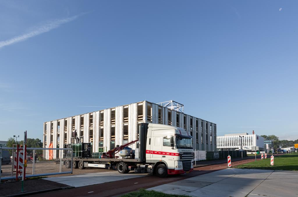 The nature-inclusive new building of Oldelft Ultrasound on the TU Delft Campus has again made significant progress. Next week, the outer shell of the building will be wind and waterproof.