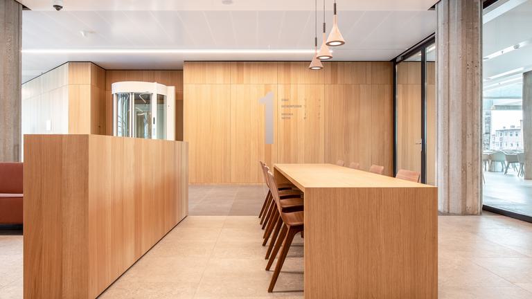 The team has transformed the previously closed military complex into a transparent, light, healthy and at the same time robust and contemporary office building in which it is pleasant to work, meet and connect. The interior design is timeless, efficient and sustainable and is aimed at a modern and representative atmosphere for the organization.