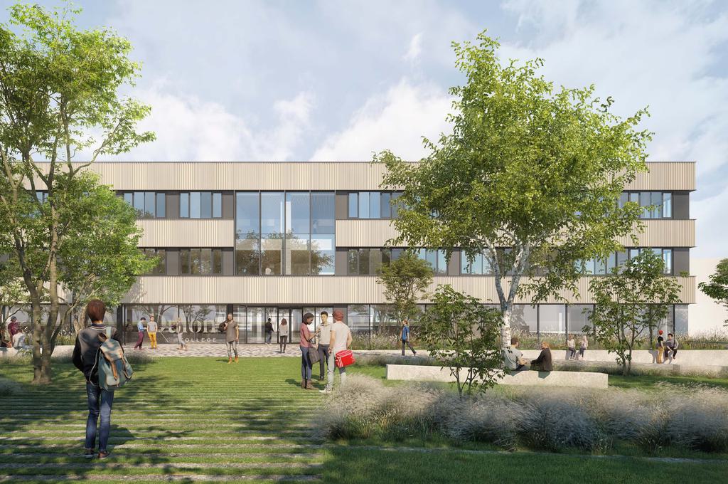 Dulon College will become a nearly energy-neutral building (BENG) after the transformation is finished. This is due to a completely new high-insulating facade, some 1,900 m² of solar panels on the roof, a CHP system, underfloor heating and sprinkler ventilation. The aim is also to achieve the 'Fresh Schools Class B' label for a healthy indoor climate. So there will not only be sustainable investment in the building, but also in the well-being of the people working here and the students working on their future.