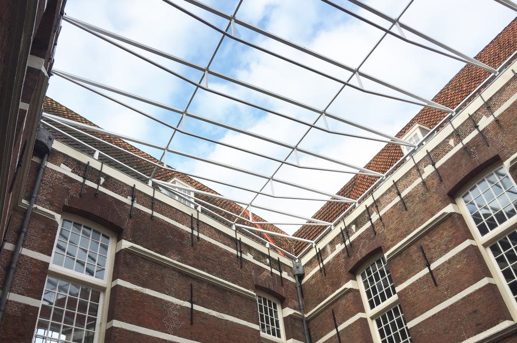 The facades around the patio are now over four hundred years old and clearly show the traces of change over the centuries. cepezed has kept their history as legible and intact as possible. Therefore, the new roof is designed with a lot of respect for the existing building. In order to minimize both the use of materials as the visual impact, the steel trusses are extremely thin. The mounting is minimalistic and leaves the existing building changeless as much as possible. Double and walkable glass will be installed on the trusses; this will leave the generous natural light in the courtyard unchanged as well. An air extraction system will be integrated into the raised edge of the new roof and will contribute to a pleasant climate on the terrace.
