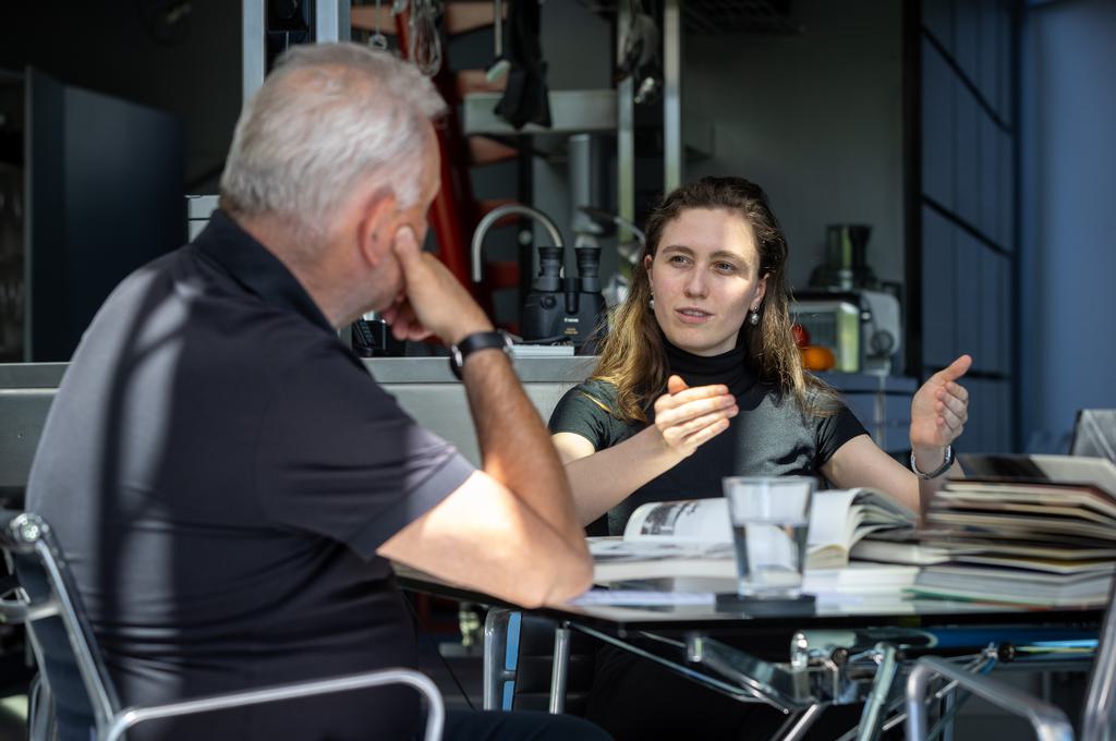 The designs of cepezed - inventive, light, detachable - are indebted to designers like the Frenchman Jean Prouvé (1901-1984). No design that shows this as clearly as the ‘Two demountable houses under one roof’ in Delft's Tanthof. At the kitchen table of the residence on the right, cepezed partner Jan Pesman (72) and cepezed architect Alexandra Runcan (27) share their interest in Prouvé.