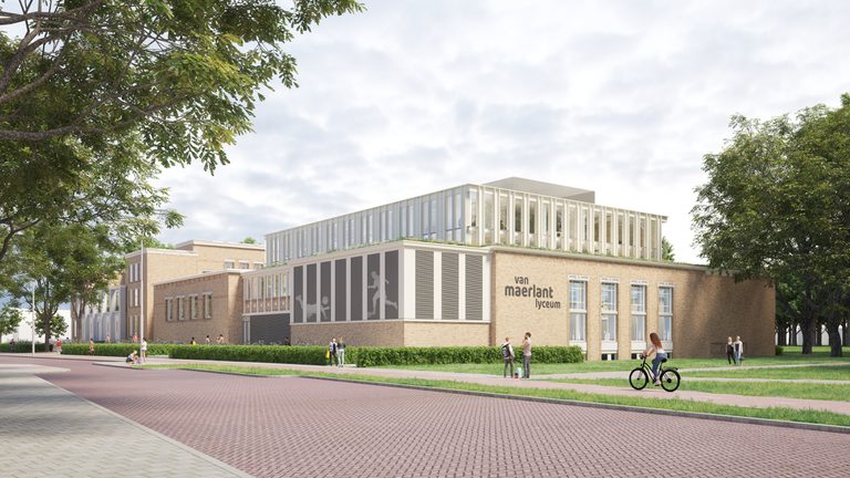 The Van Maerlantlyceum in Eindhoven is getting a drastic makeover. Part of the school building will be demolished, but the characteristic facades and the auditorium will be preserved and will soon form the monumental jacket of a state of the art school building.