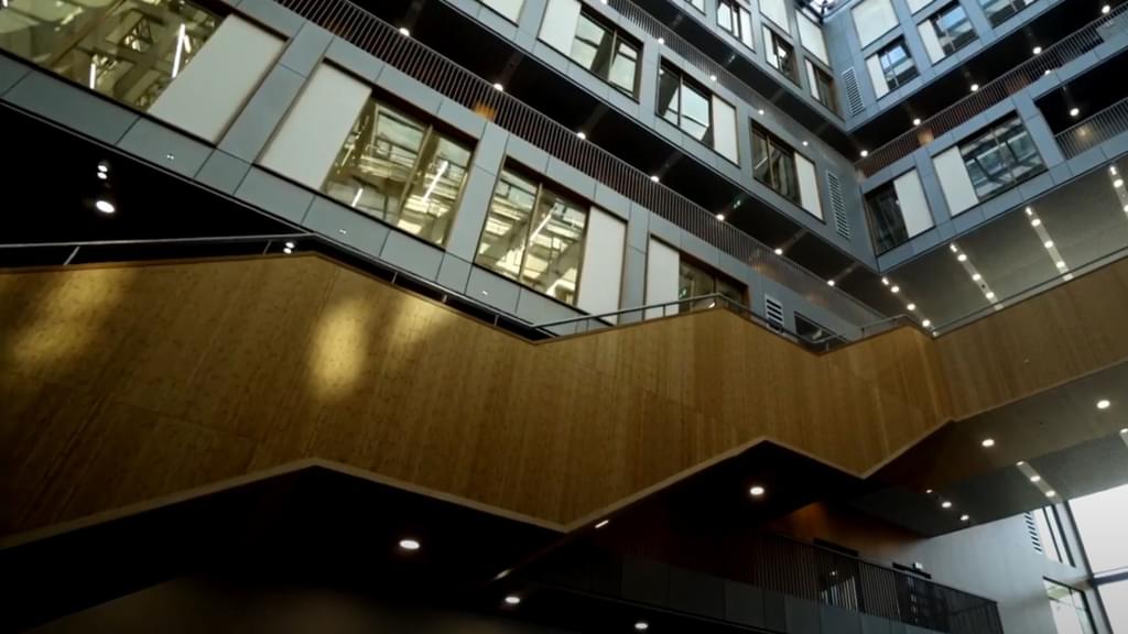 All installations are placed so that they do not transmit any vibrations. Channels are made vibration free through the use of rubber rings and dampers. And all functions that can cause vibration, like the lift and the channels for air circulation, are accommodated in the high rise – the fifth and sixth floor contain installations that work for both building parts.