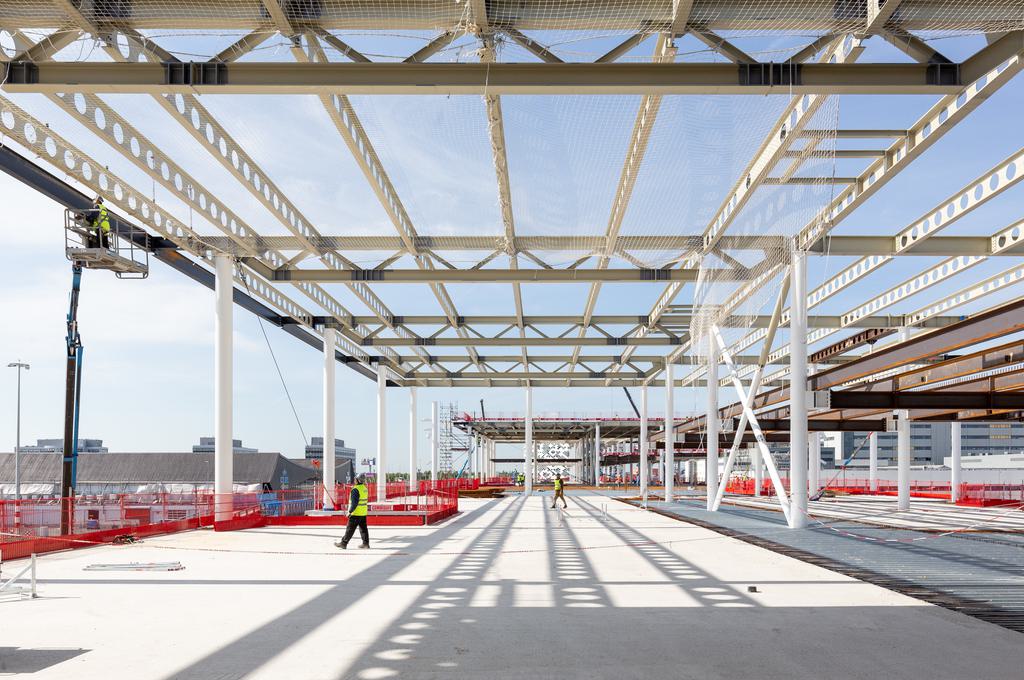 De bouw van de nieuwe pier op luchthaven Schiphol vordert gestaag. Grote delen van de staalconstructie zijn inmiddels gemonteerd en ook de staalplaat-betonvloeren zijn al voor een groot deel gelegd en afgestort. De uitvoering loopt parallel met de intensieve bouwvoorbereiding van de fasen die nog komen. Voor begeleiding van de fabricage van specifiek ontworpen bouwelementen zijn leden van het ontwerpteam onder meer regelmatig op locatie bij producenten in China, Portugal, Turkije en Italië. De ingebruikname van de nieuwe pier is inmiddels vastgesteld op december 2020.