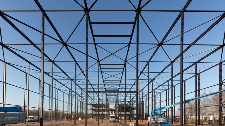 De prefab stalen draagconstructie voor het fonkelnieuwe hoofdkantoor van REV’IT! in Oss is zo goed als geplaatst! REV’IT! is een innovatief en wereldwijd toonaangevend motorkledingmerk. Onder meer door de sterke groei van het bedrijf heeft het behoefte aan een nieuw pand. Dat moet natuurlijk de stoere merkwaarden op het gebied van design, performance en innovatie reflecteren. cepezed mocht het daarom ontwerpen.