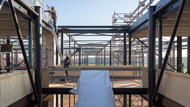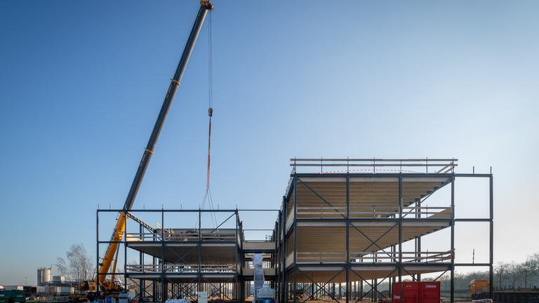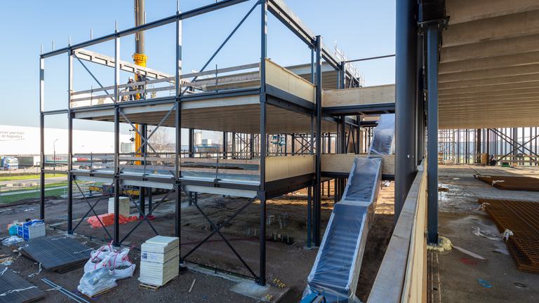 Vorig jaar zomer is gestart met de bouwvoorbereidingen. Met de plaatsing van het staalskelet zijn inmiddels de contouren zichtbaar geworden. Het pand biedt straks onderdak aan onder meer kantoren en: