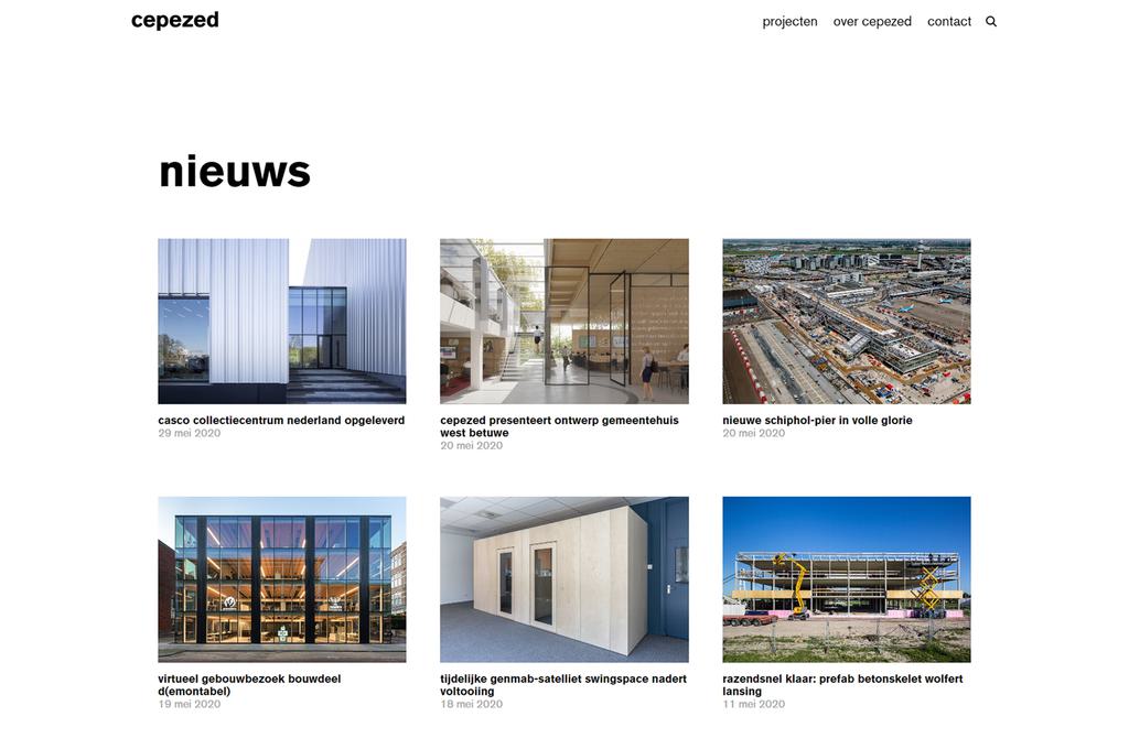 Het gebundelde nieuws bestaat onder meer uit berichten over projecten, zoals nieuwe opdrachten, bouwupdates en actualiteiten over bouwvergunningen, opleveringen en ingebruiknames. Ook algemene wetenswaardigheden over cepezed passeren de revue; denk daarbij aan interessante publicaties, innovaties, evenementen en andere actualiteiten.