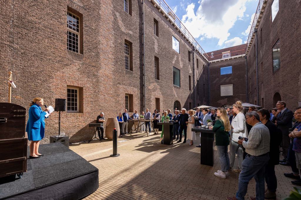 ‘De oude grandeur van het voormalig armamentarium is weer helemaal terug in de stad’, zei burgemeester Marja van Bijsterveldt gisteren in haar speech. Zij vindt het ‘schitterend om te zien wat hier de afgelopen jaren is gebeurd’ en memoreert het enthousiasme waarmee Driestar en cepezed aan het project begonnen. ‘U zag wat er mogelijk was. U zag de potentie van dit historische gebouw. U gaf dit deel van de historische binnenstad een enorme impuls.’ Van Bijsterveldt waardeerde de inzet van cepezed en wees speciaal op de twee nieuwe bruggen, die het arsenaal volgens haar niet alleen verbinden met de omliggende grachten, maar ook een ‘symbolische overbrugging’ zijn en een ‘handreiking naar de stad’.