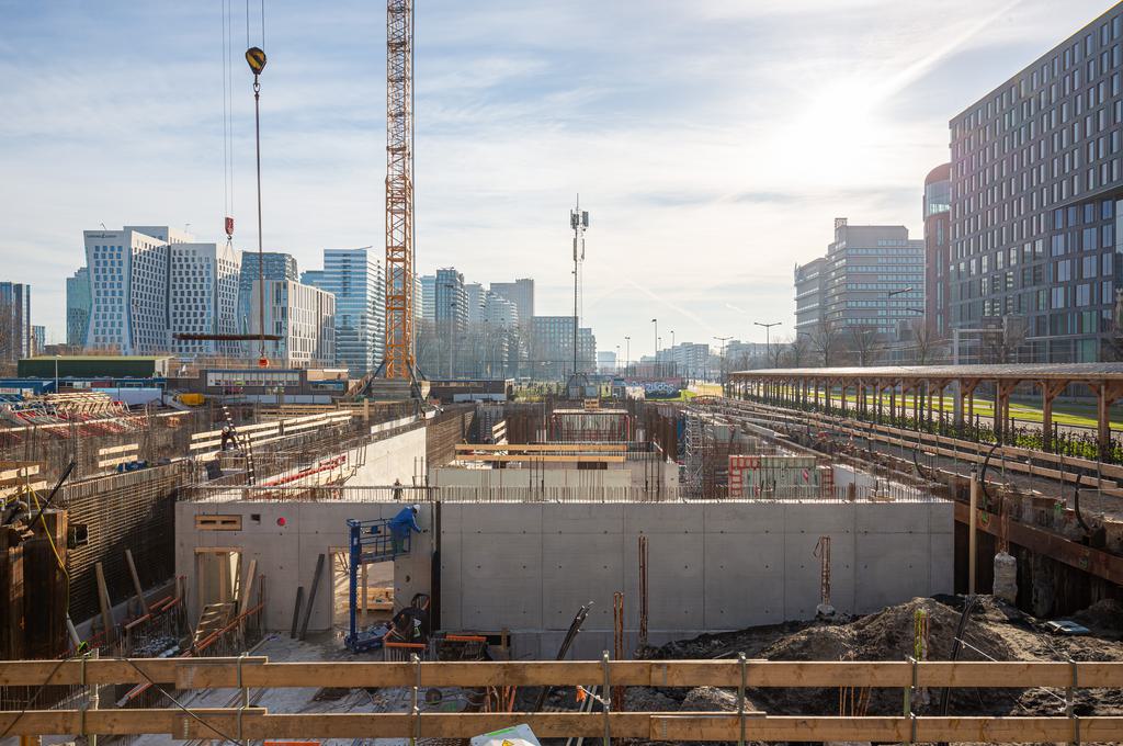 Op de Zuidas wordt gewerkt aan het nieuwe onderzoeksgebouw voor de Vrije Universiteit Amsterdam (VU). Het ruim 25.000 m² tellende pand maakt onderdeel uit van het nieuwe Kenniskwartier. De funderingsconstructie en kelderbak zijn nagenoeg gereed, waardoor de contour van het gebouw steeds meer zichtbaar wordt.