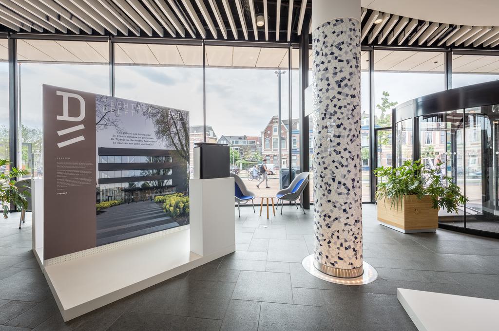 Vandaag is in het stadskantoor van Delft de expositie Techtalk geopend. De expositie toont van dertien Delftse bedrijven innovatieve technische oplossingen die de wereld aangenamer en duurzamer maken. cepezed exposeert een mock-up van de demontabele gevel toegepast in de circulair ontwikkelde en ontworpen Tijdelijke Rechtbank in Amsterdam. De bekleding van deze gevel bestaat uit een naadloos, 13% open kunststof doek dat met speciale veren aan vier kanten is opgespannen in een aluminiumprofiel. Het lichtgewicht doek minimaliseert het materiaalgebruik én is eenvoudig herbruikbaar en recyclebaar. De Delftse wereldspeler op het gebied van bioreactoren Applikon, waarvoor cepezed het hoofdkwartier ontwierp, toont op de expositie een kleine 3D-geprinte reactor. De innovatie-expositie is gratis te zien tot woensdag 31 juli. Meer informatie is te vinden op de website van de gemeente Delft.