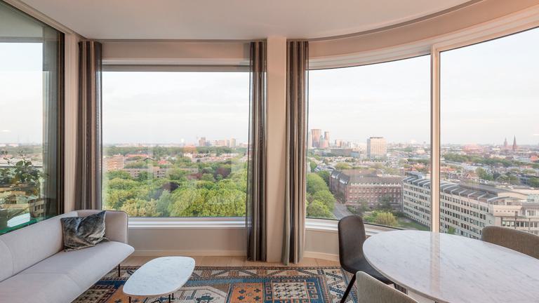 Het project complex bestaat uit een gerenoveerde hoogbouw, een nieuwe laagbouw en een grootschalige parkeerkelder met een landschappelijke inrichting op het dak. De hoogbouw heeft een enorme schaal en is op veel plekken in de stad al van veraf te zien. Dit gebouw ‘Hoge Duin’ bevat acht penthouses en ruim 180 appartementen, inclusief short stay woningen en een aantal hotelappartementen voor bewonersgasten. De woningen zijn langs de gevels georiënteerd, zodat zij veel daglichttoetreding en een panoramisch uitzicht hebben; aan de ene kant van het gebouw over het centrum van Den Haag en aan de andere kant over de zee.
