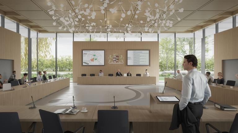 cepezed scoorde binnen de architectenselectie het hoogst op alle beoordelingscriteria. Ons plan van aanpak werd realistisch en deskundig bevonden, onder meer vanwege een goed zicht op mogelijke risico’s en onze ruime ervaring in politiek-bestuurlijke omgevingen. Daarnaast voelde de gemeente zich in ons schetsontwerp begrepen en gezien; in- en exterieur tonen een herkenbare identiteit waarin de 26 gemeentekernen, de rivier de Linge en het landschap van de Betuwe een belangrijke plaats hebben. Ook op het gebied van toegankelijkheid had het ontwerp van cepezed de voorkeur. Voor de beoordeling op dit punt werd Ongehinderd betrokken, een maatschappelijke onderneming gericht op een goede toegankelijkheid voor mensen met een fysieke beperking. Tot slot blijven de geraamde kosten binnen de gestelde kaders en acht een externe kostenadviseur het schetsontwerp haalbaar.