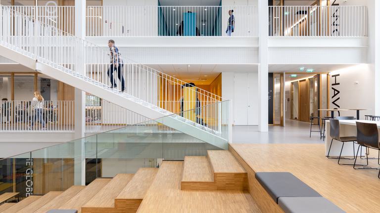 Een ander voorbeeld is de Internationale School Almere (ISA), die begin 2023 wordt opgeleverd. Hier gaat het om nieuwbouw voor basisschoolleerlingen en voortgezet onderwijs. In Ede ontwierp cepezed de transformatie van het Dulon College, waarbij bestaand en nieuw ontwerp samenkomen. En in Waddinxveen wordt het nieuwe Coenecoop College, dat net als het Cambreur College zeer hoog scoort op ‘Frisse School’ en ‘BENG’.