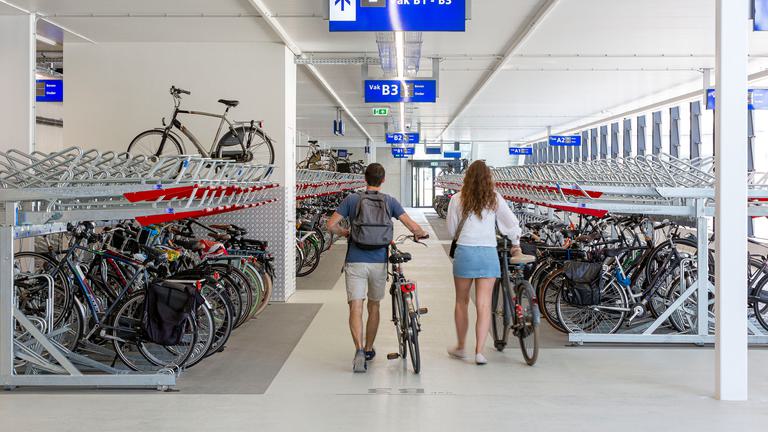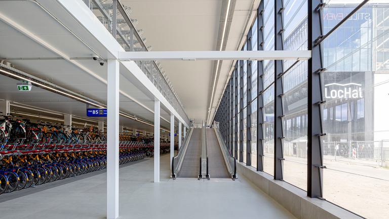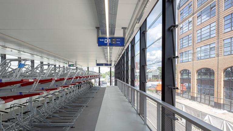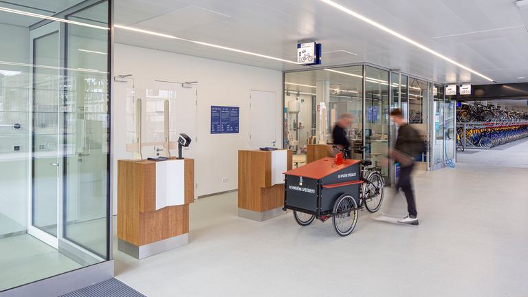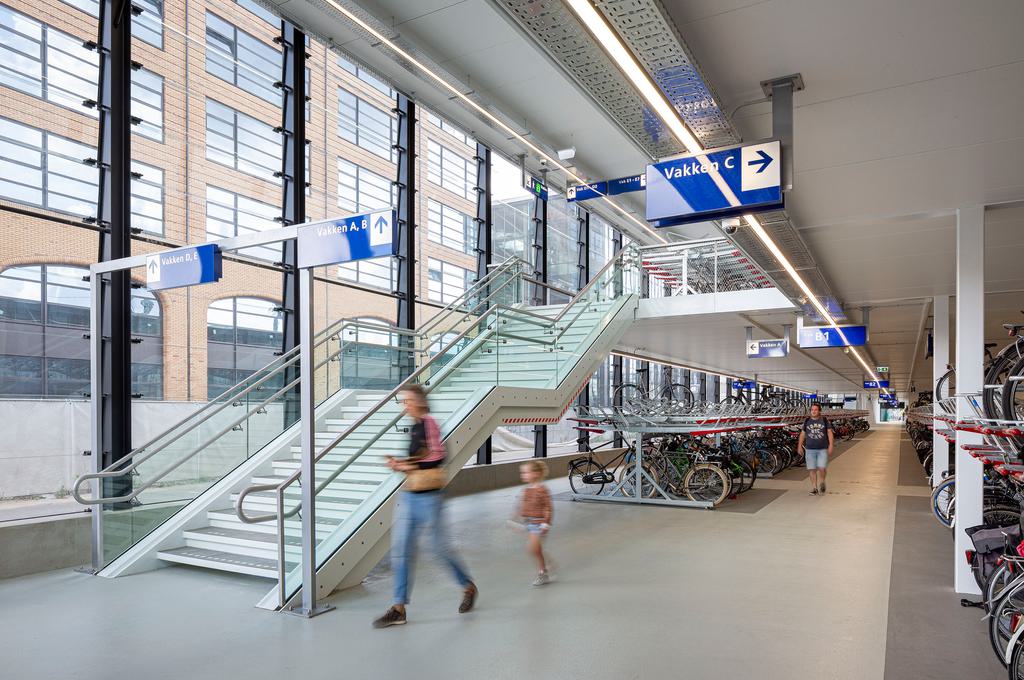 De uitnodigende stalling is bemand tijdens de perioden dat de treinen rijden. Voor een veilige omgeving licht ze ’s avonds bovendien op. Stallen is de eerste 24 uur gratis en elektronische borden geven precies aan waar plekken vrij zijn. De etage is bereikbaar via een rolband. Bij de daadwerkelijke stallingsplek kunnen gebruikers een QR-code scannen waarmee ze bij terugkomst makkelijk hun fiets kunnen terugvinden. Naast de entree bevindt zich een serviceruimte voor kleine reparaties. Ook zijn er zo’n 200 OV-fietsen te huur.