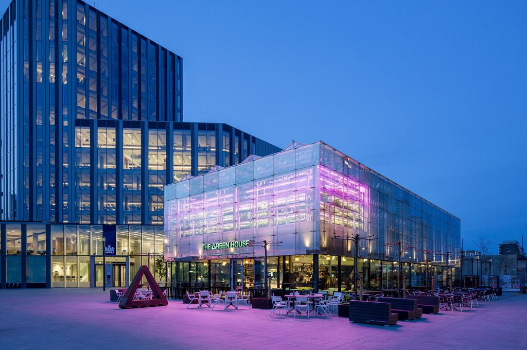 Bij The Green House, een tijdelijk paviljoen in het Utrechtse stationsgebied, gaat de materiaalcombinatie binnen de kit of parts nog een stap verder. Hier zijn voor de vloer van de begane grond geoogste klinkers gebruikt en de gevel is gemaakt van hergebruikte rookglazen gevelpanelen. Ook in latere ontwerpen kiest cepezed, binnen een constructie van hout, staal, (gerecycled) beton of een combinatie daarvan, zoveel mogelijk voor hergebruikte elementen en biobased materiaal.