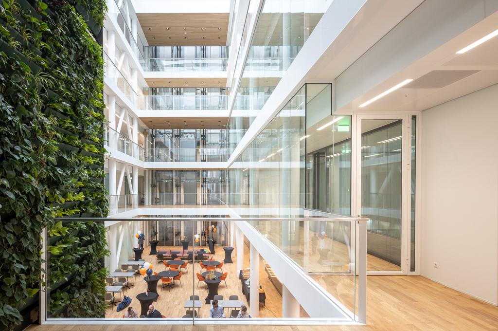 De opvallende, wit gecoate staalconstructie is efficiënt ontworpen en mooi afgewerkt, waardoor er geen extra afwerkingslaag nodig is. De zichtbare constructie zorgt voor een ruimtelijk effect én het zorgt ervoor dat het gebouw flexibel in te delen is. Het superefficiënt gebruik van materialen in combinatie met 420 zonnepanelen op het laagbouwdak, waterbesparende toiletten, een groot aantal parkeerplekken met oplaadplekken, warmtepompen (waardoor geen gasaansluiting meer nodig is) en een aquiver (warmteopslag) heeft ervoor gezorgd dat het gebouw BREEAM Excellent gecertificeerd is.