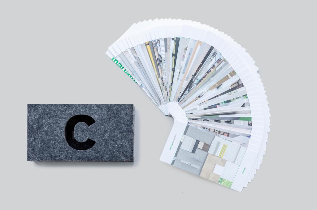 Het concept van de kaartenset is geïnspireerd op de kleurenwaaier; een ontwerpinstrument dat in het interieurmetier veelvuldig wordt gebruikt. De losse kaarten hebben een handzaam formaat van 155 x 75 mm. Aan één kant prijkt een projectfoto, de weerzijde geeft beknopte projectinformatie. De kaarten zijn bijeengebracht in een speciaal ontworpen viltachtige cassette vervaardigd van gerecyclede petflessen; een verwijzing naar het veelvuldig gebruik van circulaire en biobased materialen in de projecten van cepezedinterieur.