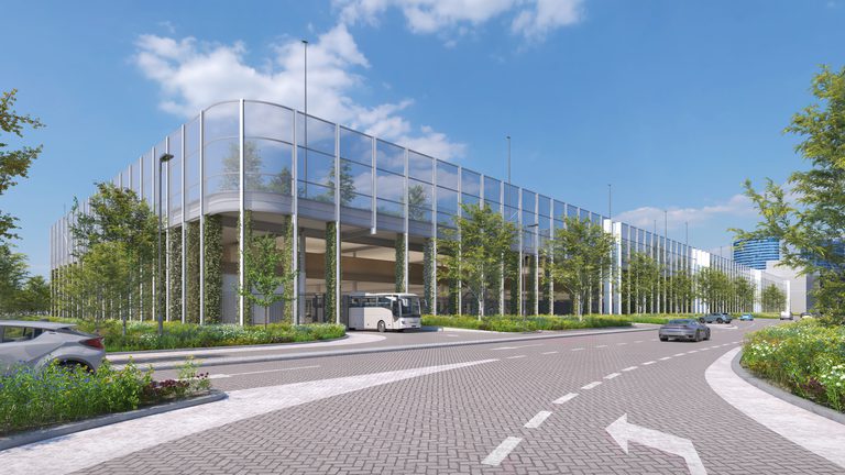 De Smart Mobility Hub komt op een kavel van meer dan 42 duizend vierkante meter in Amsterdam Arena. Het wordt een gebouw van twee bouwlagen met halfopen gevels en een openbaar dakpark met sportvoorzieningen, mede gericht op de bewoners van de wijk Zuidoost. Via schachten valt daglicht tot op de begane grond, waar planten en bomen groeien. Een houten bouwvolume dat losstaat van de hoofddraagconstructie biedt plaats aan onder meer toiletten, een kiosk en een hostel.