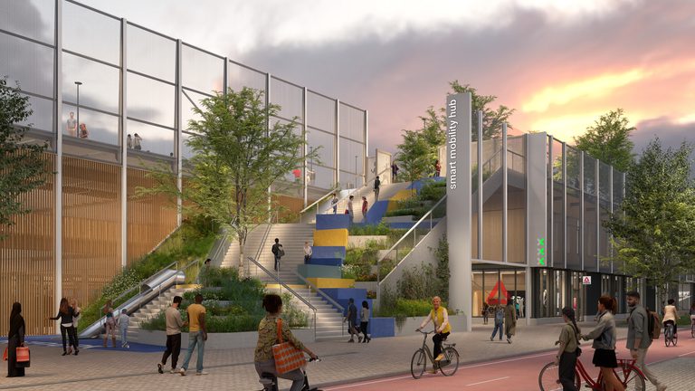 cepezed ontwerpt momenteel twee overstapmachines: de Smart Mobility Hub (SMH) in Amsterdam en Mobiliteitshub XL (MHXL) in Utrecht. Vanwege de enorme schaal en de combinatie van functies zijn dit complexe opgaves. MHXL vormt straks ook nog eens de grens van een woonbuurt en SMH heeft een openbaar sportpark op het dak. Hoe gaan we daarmee om?