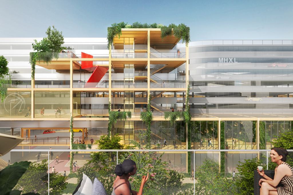 Utrecht zet voor de toekomst in op grote parkeergebouwen aan de rand van de stad. Plekken waar je naast parkeren kunt overstappen op het ov of de fiets, waar je een boodschap kunt doen, of een pakket op kunt halen. cepezed won de tender voor een van deze multifunctionele hubs en trok de dubbelfunctie daarin nog een stapje verder met een publieke, houten pergola voor de aangrenzende woonbuurt.