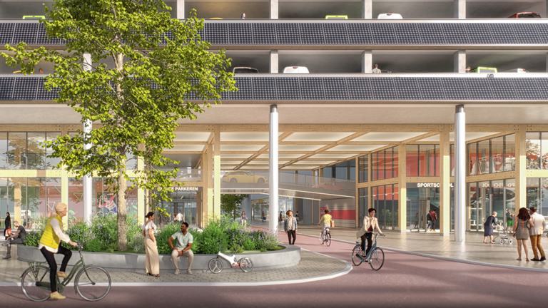 Het streven is om zoveel mogelijk circulair te werk te gaan, onder meer door glas uit tuinbouwkassen te hergebruiken. Naast het ‘opbreken’ van het auto- en voetgangersdeel, breken we ook de zeer lange gevel op, door in het midden de hellingbanen te situeren. cepezed deed voor het ontwerp van de Mobiliteitshub XL ervaring op met de Smart Mobility Hub in Amsterdam Zuidoost, momenteel in uitvoering.