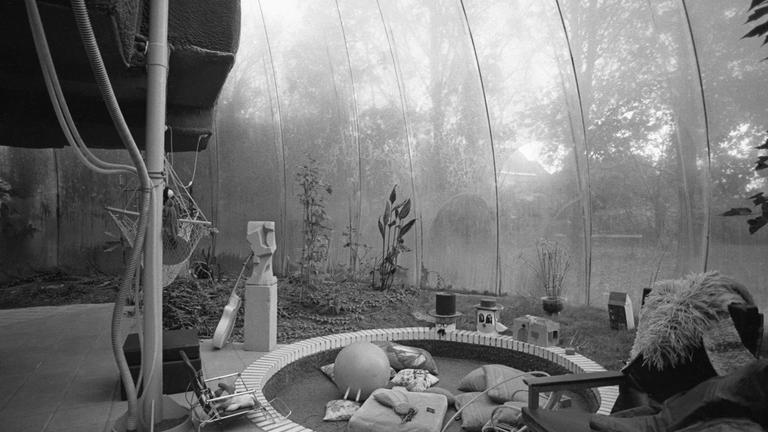 Do it yourself-achtig is ook het eerste van de drie voorbeelden van experimentele ontwerpen waar Véronique haar lezing mee besluit: A Balloon Home van Lode Janssens. Het ontwerp van Janssens vindt zij constructief interessant, maar vooral vanwege het ‘pedagogische experiment’ dat dit huis tegelijkertijd is. Wat doet het met je als je als gezin in een grote ruimte vertoeft en intensief contact maakt met de seizoenen. De tuin liep onder het ballondoek door naar binnen en als het regende hoorde je dat héél hard. Het geëxperimenteer eindige door een pak sneeuw dat te zwaar bleek.
