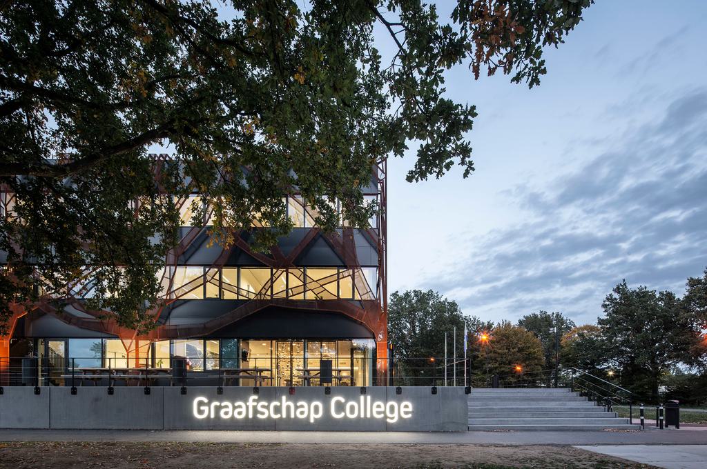 Onder toeziend oog van veel belanghebbenden én belangstellenden opende de burgemeester van Doetinchem dinsdag 16 oktober feestelijk de gloednieuwe vestiging van het Graafschap College op Sportpark Zuid. cepezed en cepezedinterieur vervaardigden het integrale ontwerp voor het moderne schoolgebouw, dat ruimte biedt aan circa 700 leerlingen van de mbo-opleidingen Sport & Bewegen en Veiligheid & Vakmanschap. Sportpark Zuid is met zijn vele sportaccommodaties en -velden de uitgelezen plek voor de nieuwe huisvesting, waarin ook de sport gerelateerde bedrijven SportMedX en Sportservice zijn opgenomen. Het rechthoekige gebouw is opgezet rond een ruim en licht atrium dat het levendige centrum van de school is. Het ontwerp van de karakteristieke cortenstalen gevel is ontleend aan de vorm van de grote eiken rondom het gebouw. Het nieuwe Graafschapcollege is volledig gasloos; alle energievoorziening is 100% elektrisch.