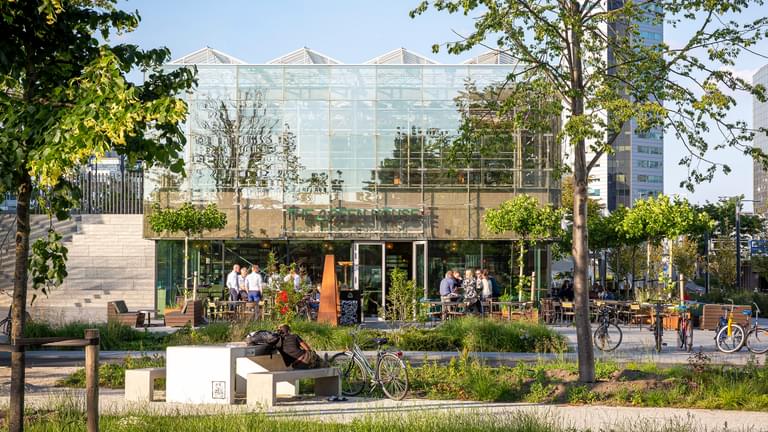 De renovatie leverde ook een leuk en handzaam ‘bijgebouw’ op, namelijk The Green House. Dit gebouw is mooi afgewerkt, is geprefabriceerd, ruwbouw is afbouw, het is tijdelijk en volledig remontabel. Ofwel, het gebouw is te demonteren en kan elders weer opgebouwd worden. Datzelfde geldt voor Bouwdeel D(emontabel) in Delft.