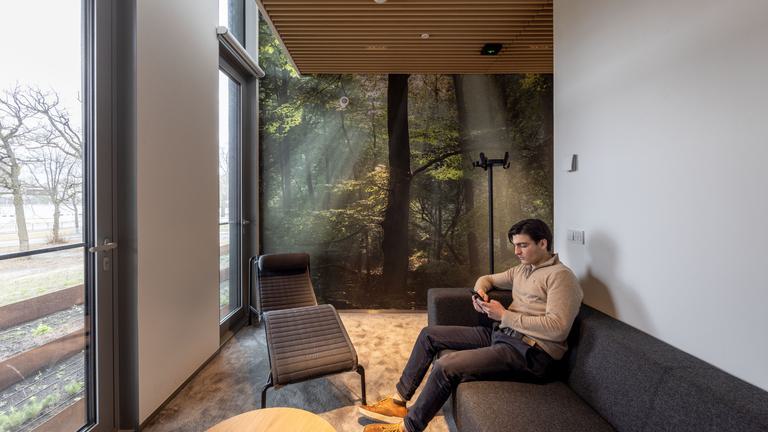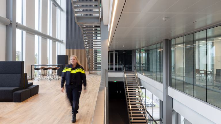 Na zorgvuldig testen wordt de Meldkamer Oost-Nederland (MK ON) operatief. Vanaf 21 maart rinkelen hier de 112-telefoons van Politie, Brandweer en Ambulancedienst. Het gebouw staat aan de rand van de Veluwe en dat is binnen te merken. De kleuren van het interieur refereren aan bos en belangrijker nog, het gebouw biedt optimaal zicht op het rustgevende, omliggende groen.