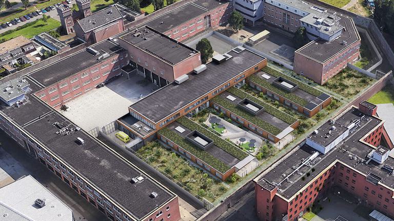 De Penitentiaire Inrichting Haaglanden aan de rand van Scheveningen is bestemd voor justitiabelen die psychische of somatische zorg nodig hebben. Midden juni 2022 startte de bouw van een nieuw Justitieel Centrum voor Somatische Zorg (JCvSZ) op het terrein. Door te kiezen voor elektrisch materieel ondervinden de justitiabelen weinig overlast van de bouw. Zo wordt de fundering bijvoorbeeld niet geheid, maar nauwelijks hoorbaar elektrisch geschroefd. En bouwpersoneel wordt elektrisch van en naar een parkeerplaats even verderop in de stad gereden.