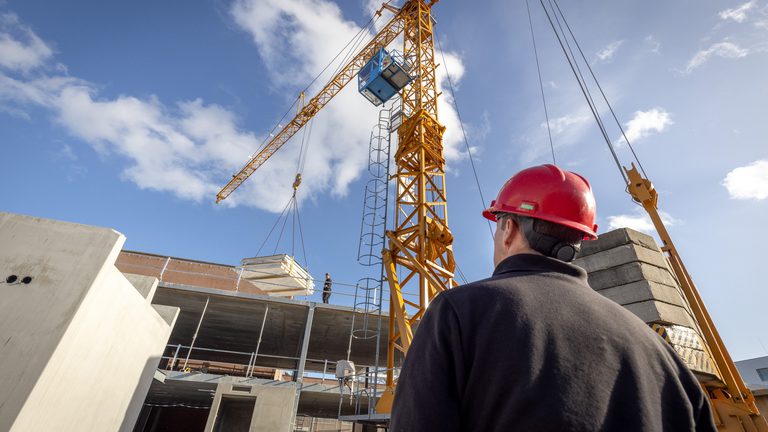 Voor het modulair bouwen op de bouwplaats moest de maximale grootte van een unit vooraf worden berekend, om de units met bouwkranen op de bouwplaats te kunnen plaatsen. Du Prie: ‘De bouwplaats was klein, waardoor we niet alle soorten bouwkranen konden gebruiken. We kozen een elektrische rupskraan die de zwaarste elementen kan tillen. Ook heeft deze kraan het voordeel dat hij bij de verste hoeken kan komen.’