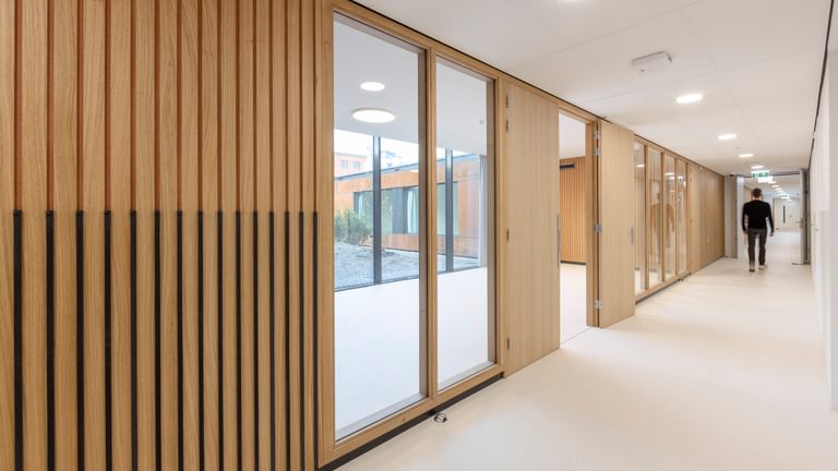 Du Prie: ‘In het materiaalgebruik moesten we ook rekening houden met de veiligheidseisen, zoals brandwerende materialen en vluchtpreventie. Daarnaast soms andere dan standaard materialen toepassen. En ook nog voldoen aan het comfort van cliënten van het zorgcentrum. Dat maakt het complex.' Schleurholts vult aan: 'En bouwen terwijl de penitentiaire inrichting in gebruik is, heeft ook veel impact op het bouwproces. Wat het stikstofarm bouwen betreft, dat is pionieren. Dingen anders doen dan standaard. Dat biedt ook kansen. We blijven ons zo ontwikkelen in circulair en slimmer bouwen; dat stimuleert ons.'
