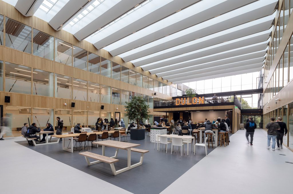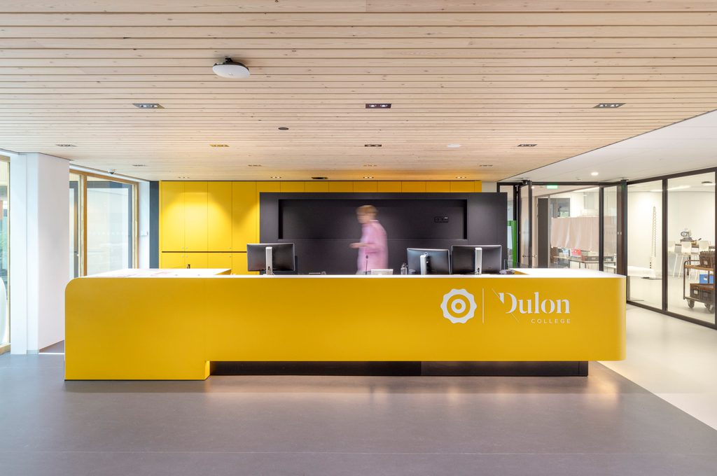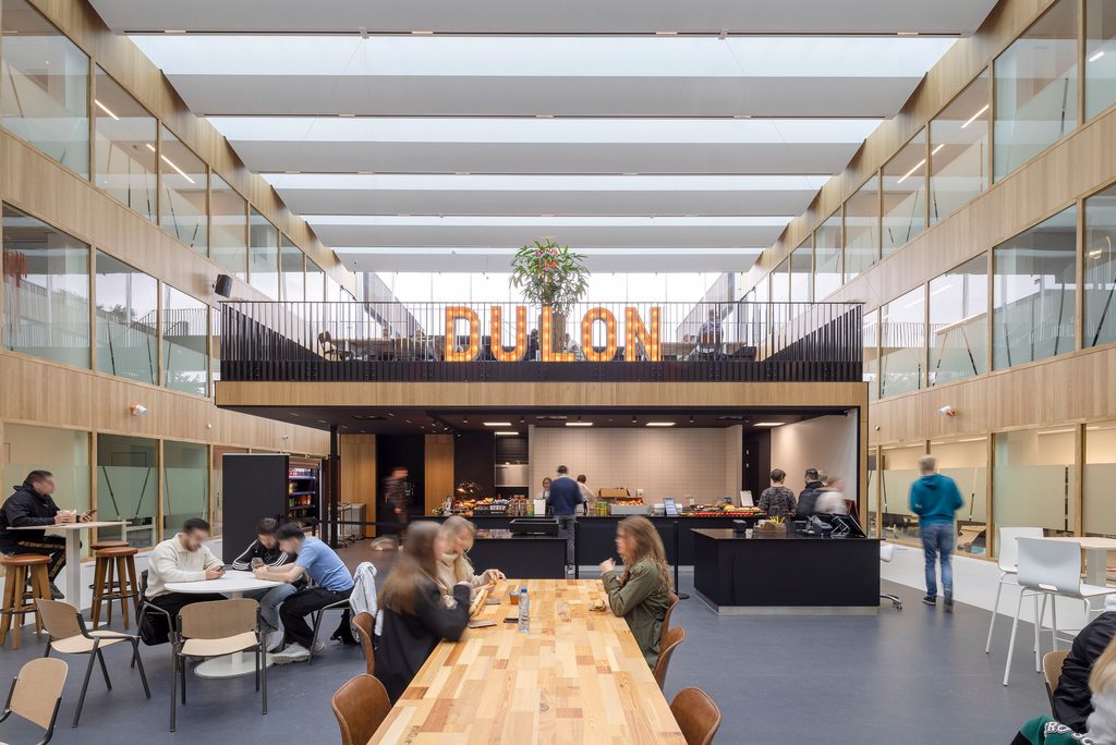 Het Dulon College is een school voor middelbaar beroepsonderwijs in Ede. De constructie van het gebouw verkeerde voor de renovatie in prima staat, maar dat gold niet voor het interieur. Dat was gedateerd, donker, slecht geïsoleerd en had geen efficiënte routing. Na de renovatie staat er een op het oog spiksplinternieuw schoolgebouw, dat in alle opzichten voldoet aan de eisen van deze tijd. Het beroepsonderwijs is verdeeld over vijf domeinen, voor bijna 3000 studenten en 300 medewerkers. De renovatie maakt aanstekelijk zichtbaar wat er binnen gebeurt.