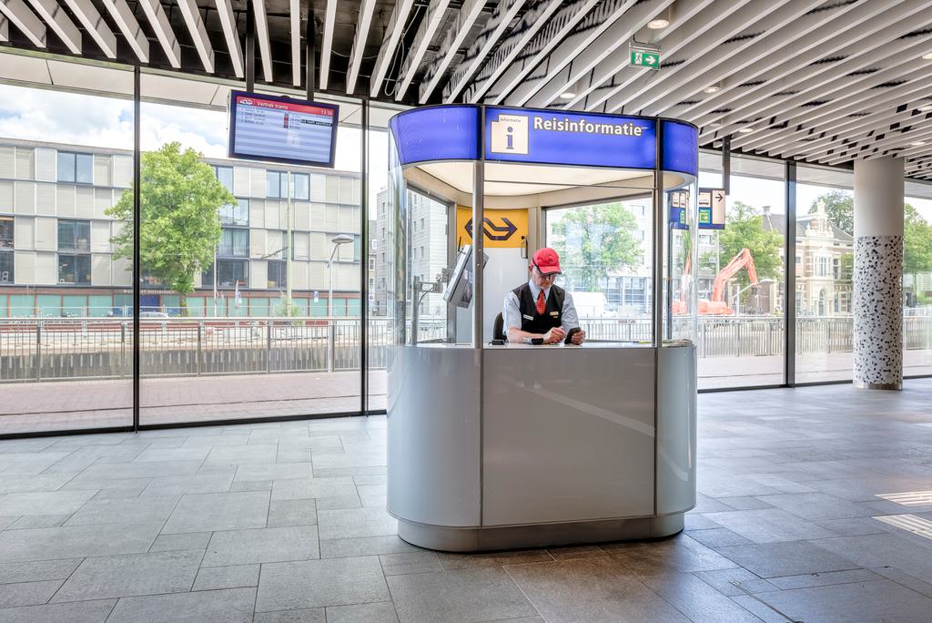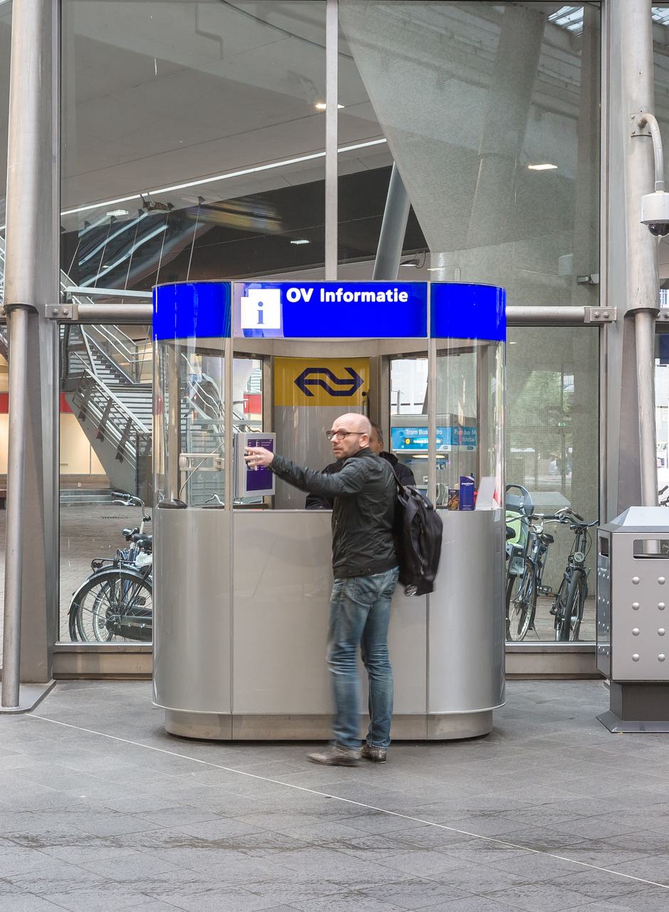 In opdracht van de Nederlandse Spoorwegen ontwierpen we de OV-balie. Dit nieuwe, prefab reisinformatiepunt heeft op circa dertig stations in Nederland de oude informatiebalies vervangen. De nieuwe OV-balie is compacter, robuuster, flexibeler bruikbaar en sluit beter aan bij de actuele identiteit van NS.